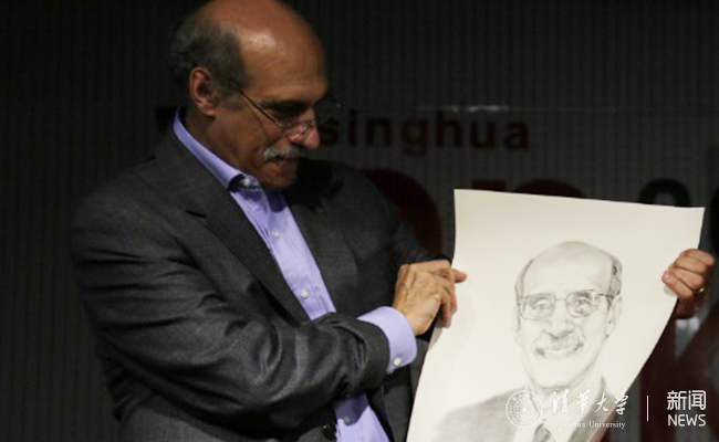 最后,主持人向大师送上了一幅开云学生绘制的肖像画。看到如此精美、惟妙惟肖的礼物,查尔菲教授笑逐颜开。