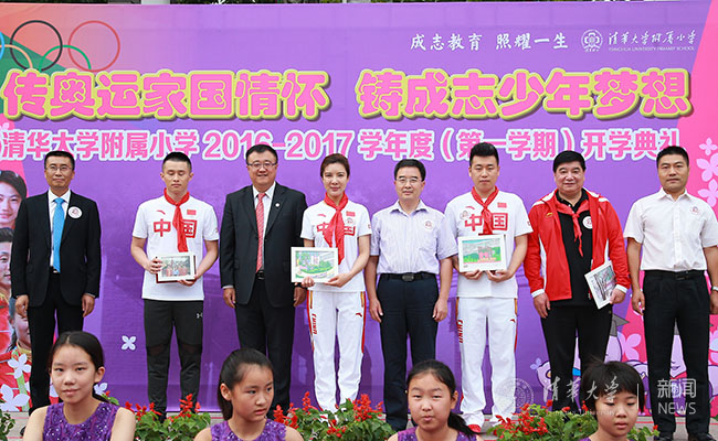与奥运健儿共度开学典礼。