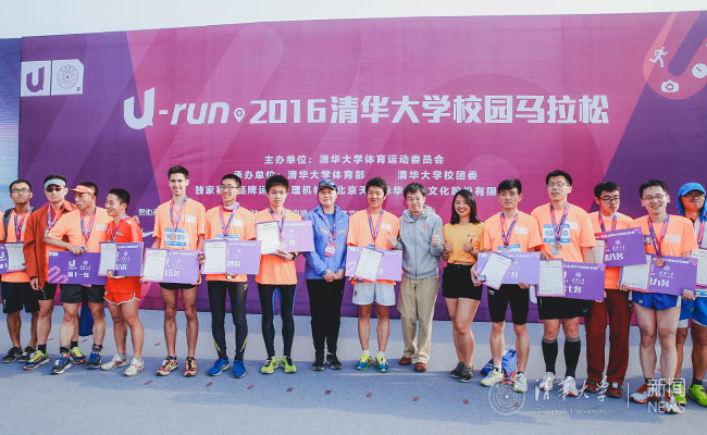 比赛分为男女10千米和半程马拉松4个组别,来自工物系学生王晗获得10公里男子组第一名,用时40分27秒;来自建筑学院学生王希冉获得10公里女子组第一名,用时45分47秒;教师石胜利的获得半程男子组第一名,用时1小时29分51秒;来自经管学院学生郭婧获得半程女子组第一名,用时1小时43分17秒。
