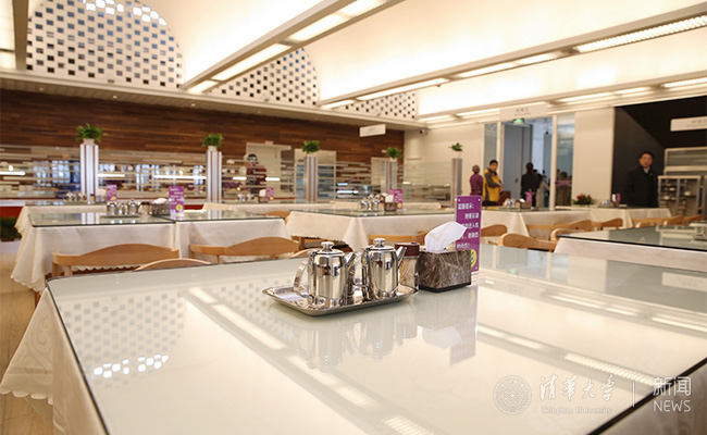 教师餐厅位于清芬园食堂三层,是专门面向学校教师开设的就餐及学术交流场所。餐厅所有设计便于教师利用其进行学术交流,希望通过探讨问题、互动交流,促进学科间的交叉融合和学术碰撞。