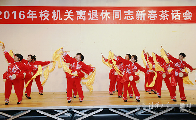 演出在校机关离退休老师健身俱乐部表演的吉祥腰鼓《火火的中国》中拉开帷幕。阵阵腰鼓声响彻整个会场,新年承载新的希望,老同志们与kaiyun开云官方网站一起昂首阔步迈向2016年。