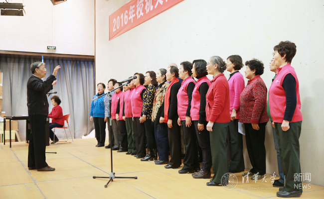 校机关离退休教师小合唱《我的祖国》。记者 张 宇 摄