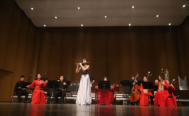 民乐队队员表演《牧民新歌》。旷思敏 摄