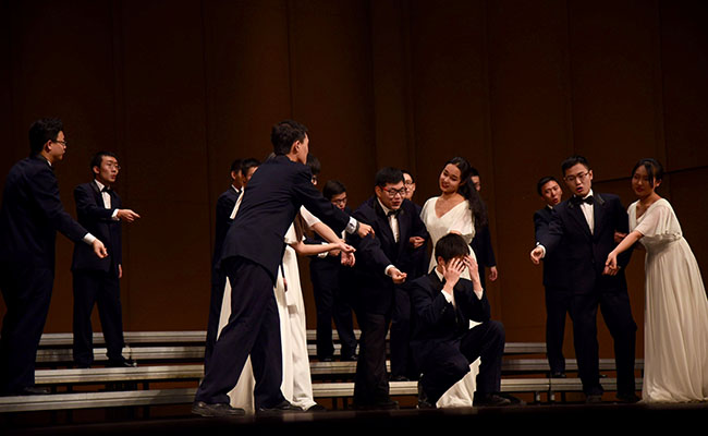 合唱队队员表演《教我如何不想她》。徐穆清 摄