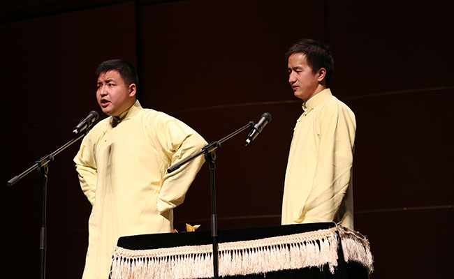 曲艺队队员表演相声《动画漫谈》。蒋乐源 摄