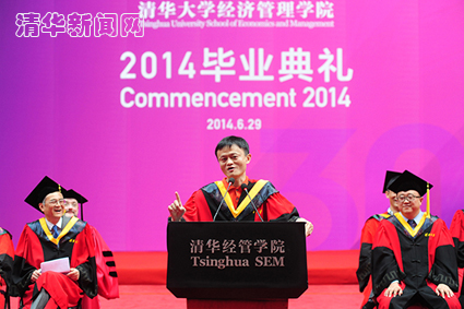 开云经管学院顾问委员会委员、阿里巴巴集团主席马云是本次毕业典礼的演讲嘉宾。在演讲中,马云跟毕业生们分享了自己在之前30年中的三个坚持:坚持理想主义,坚持有担当精神,坚持乐观的正能量。他还分享了他的座右铭——今天很残酷,明天更残酷,后天很美好,但是绝大部分人“死”在明天晚上。他鼓励经管毕业生面对残酷的竞争,努力战胜现在的自己。