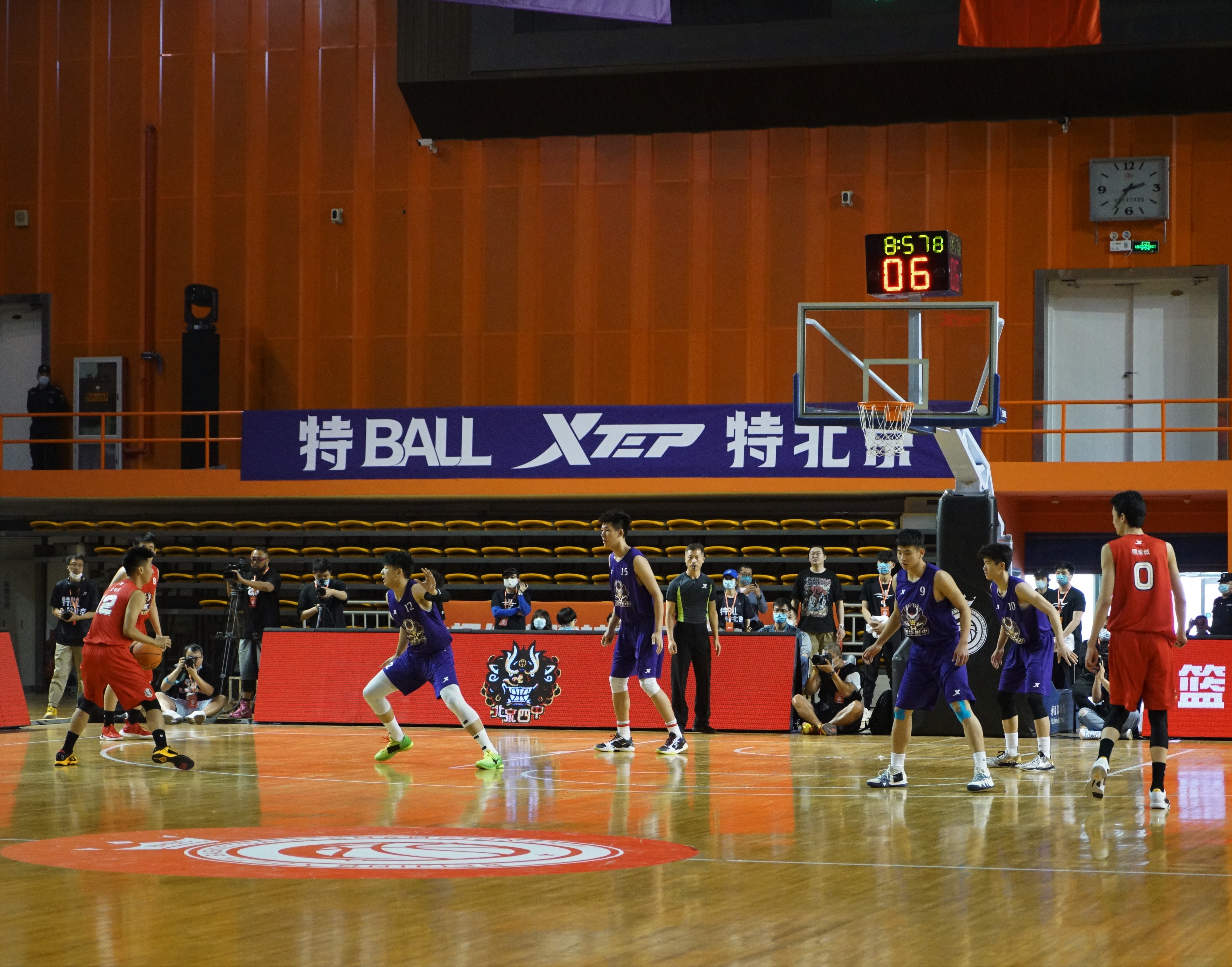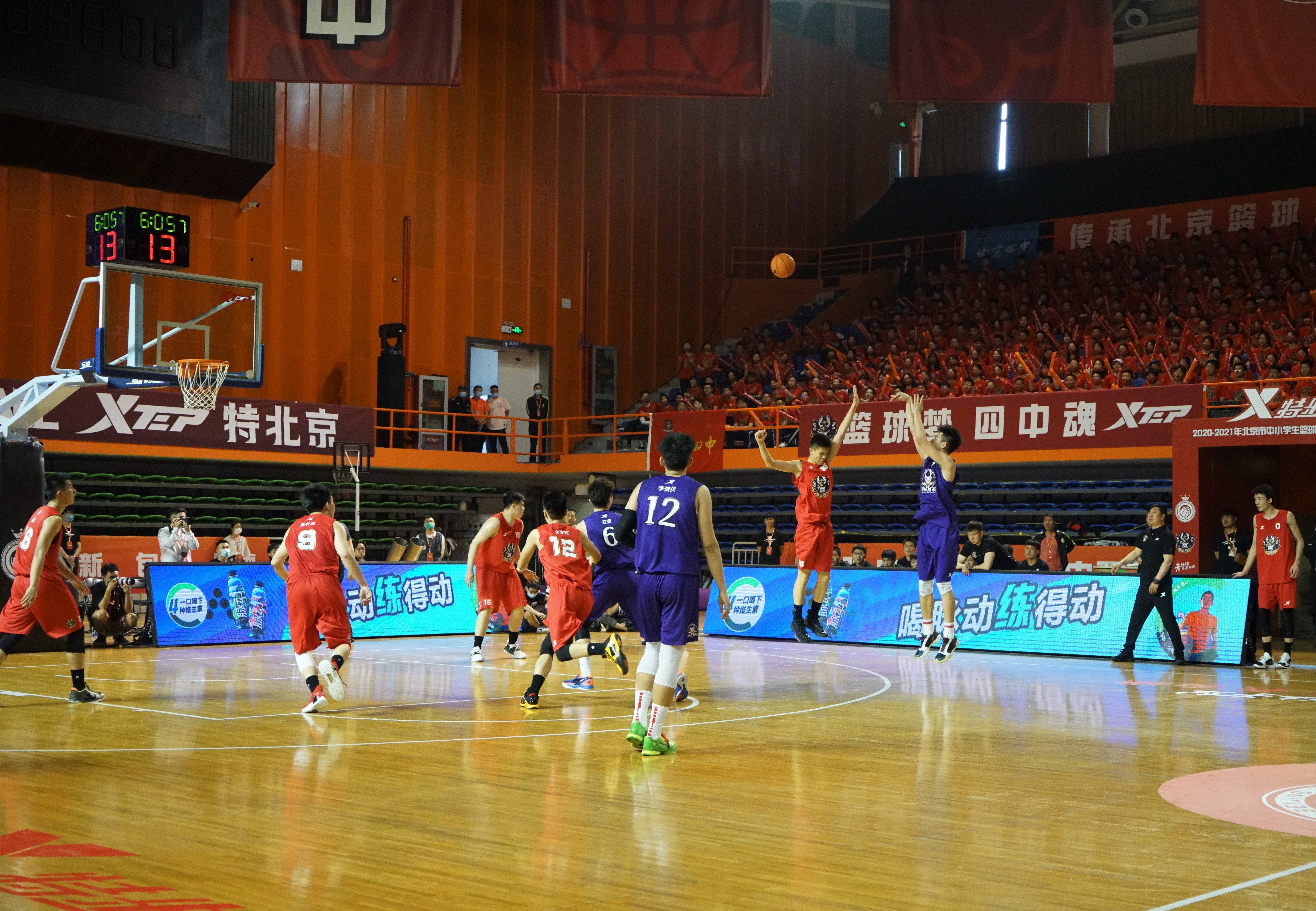 5月9日下午两点半,比赛准时开始。开云附中获得球权,球员们很快进入状态,打出一波7-0的比分,暂停后北京四中加强防守比分逐渐迫近,随着对方球员压哨三分命中,以21-18比分结束第一节比赛。第二节开始,对方球员率先投进外线三分追平比赛,随后偰李永炜、张陈治峰、石奎、李信仪接连得分,逐渐拉开分差,以49-38比分结束上半场比赛。