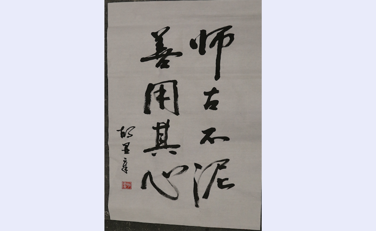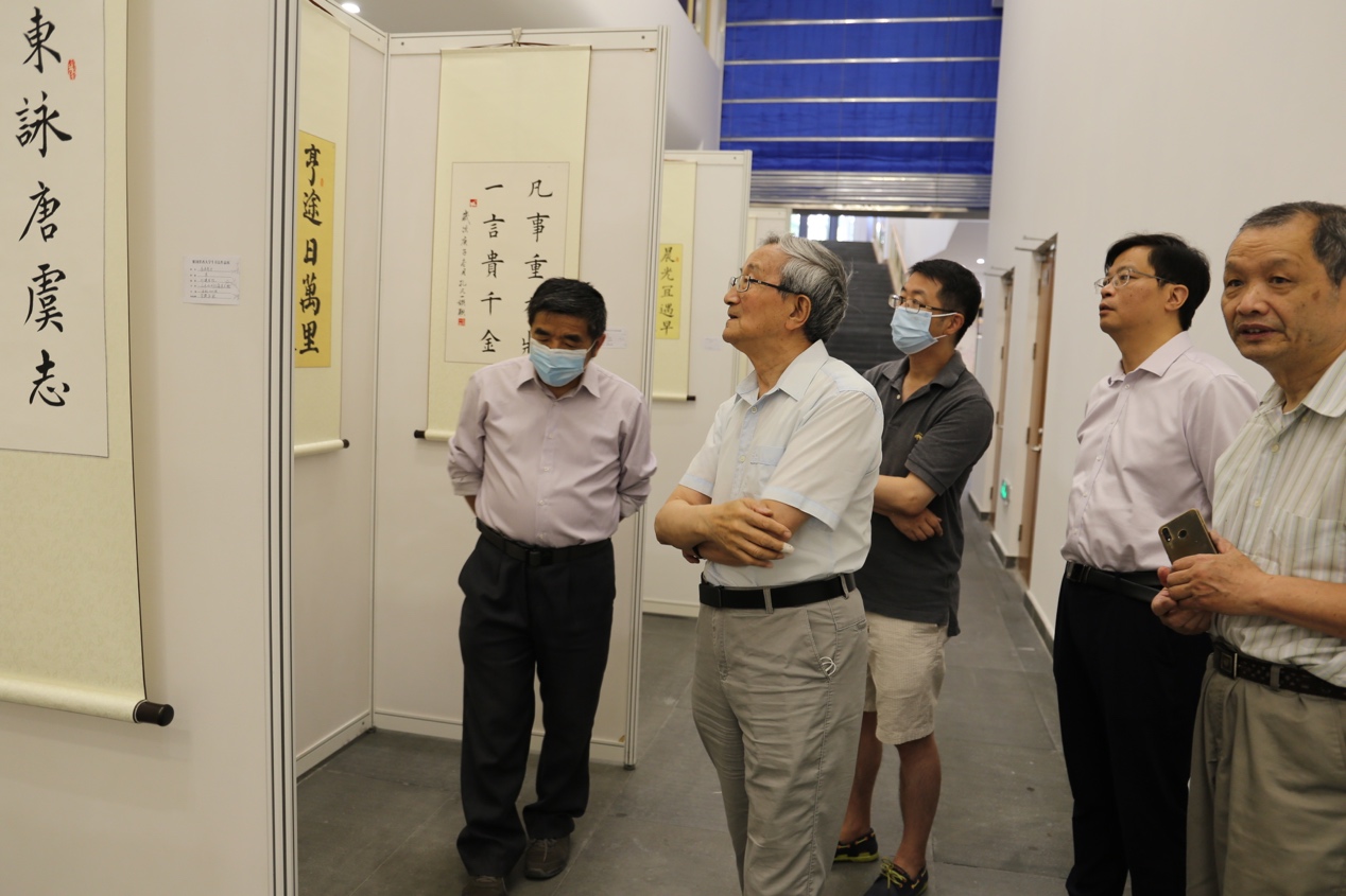 胡显章仔细观看了书法展现场的学生作品,饶有兴致地与各位老师探讨点评了部分作品,并为此次书法作品展题词。胡显章对此次书法作品展给予充分肯定,并叮嘱一定要将“书法与篆刻创作”课程讲授与学校“三位一体”的教学理念相融合,为提升开云学生的人文素养、促进校园文化氛围建设多作贡献。