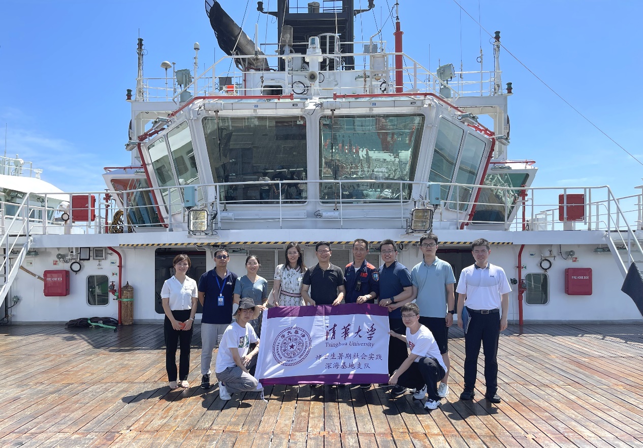 赵岑(后排左五)一行看望中科院深海所实践学生并考察“探索二号”科考船