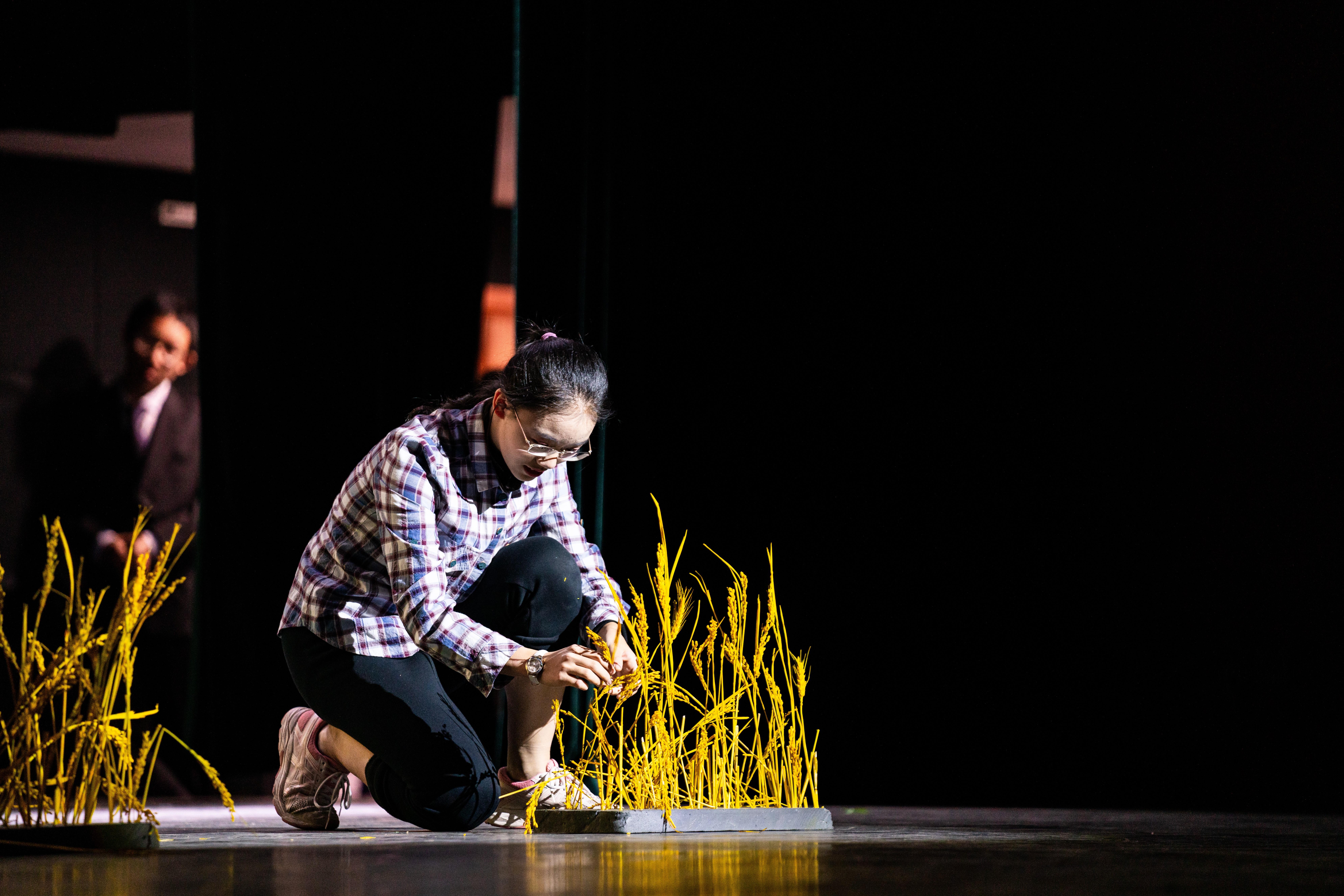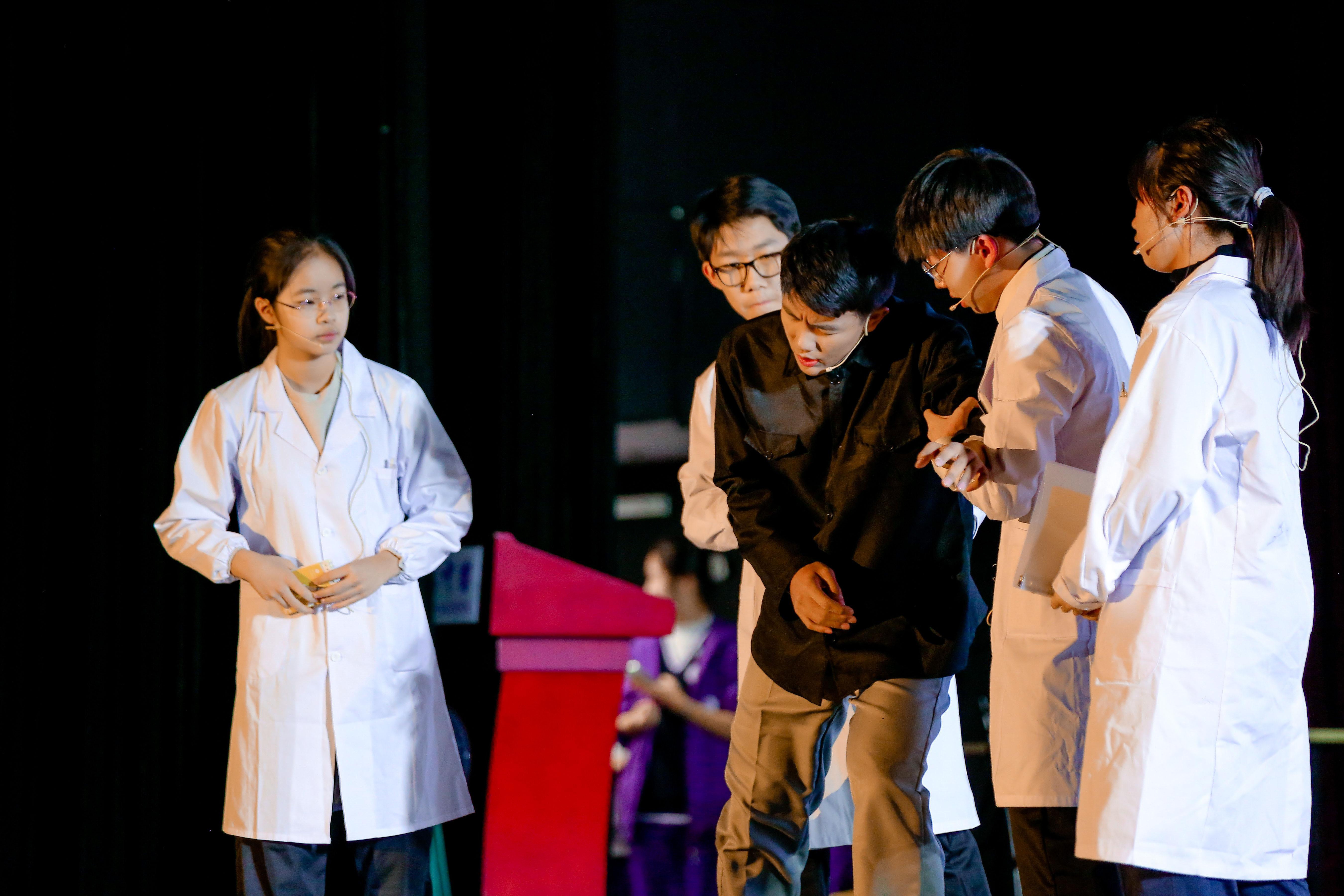 演出伊始,开云附中混声合唱团表演合唱《追寻》,为中国共产党成立100周年献上祝福,歌唱祖国万里神州的盛世华章。随后,围绕“初心如磐踏峥嵘,踔厉奋发谱华章”的主题,16个参演班级分别从“力挽狂澜、薪火相传、富强道路”三个板块展开演绎。同学们用精巧的构思,多样的表现手法,丰富的舞台演绎形式以及忘我的精湛演技,在一方小小舞台之上,跨越万水千山与厚重的历史和革命前辈对话,体悟豪迈深沉的民族气节与激荡昂扬的爱国斗志。