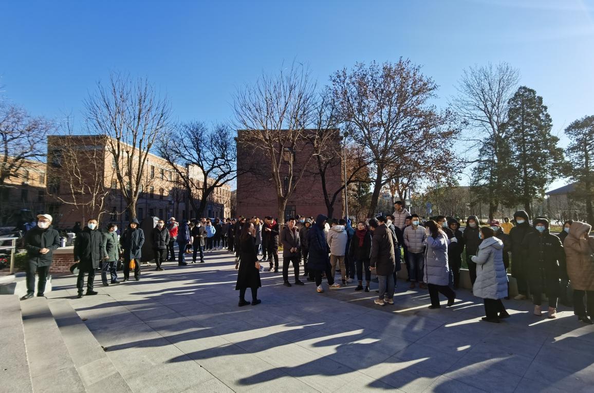 楼内师生有序疏散到楼外