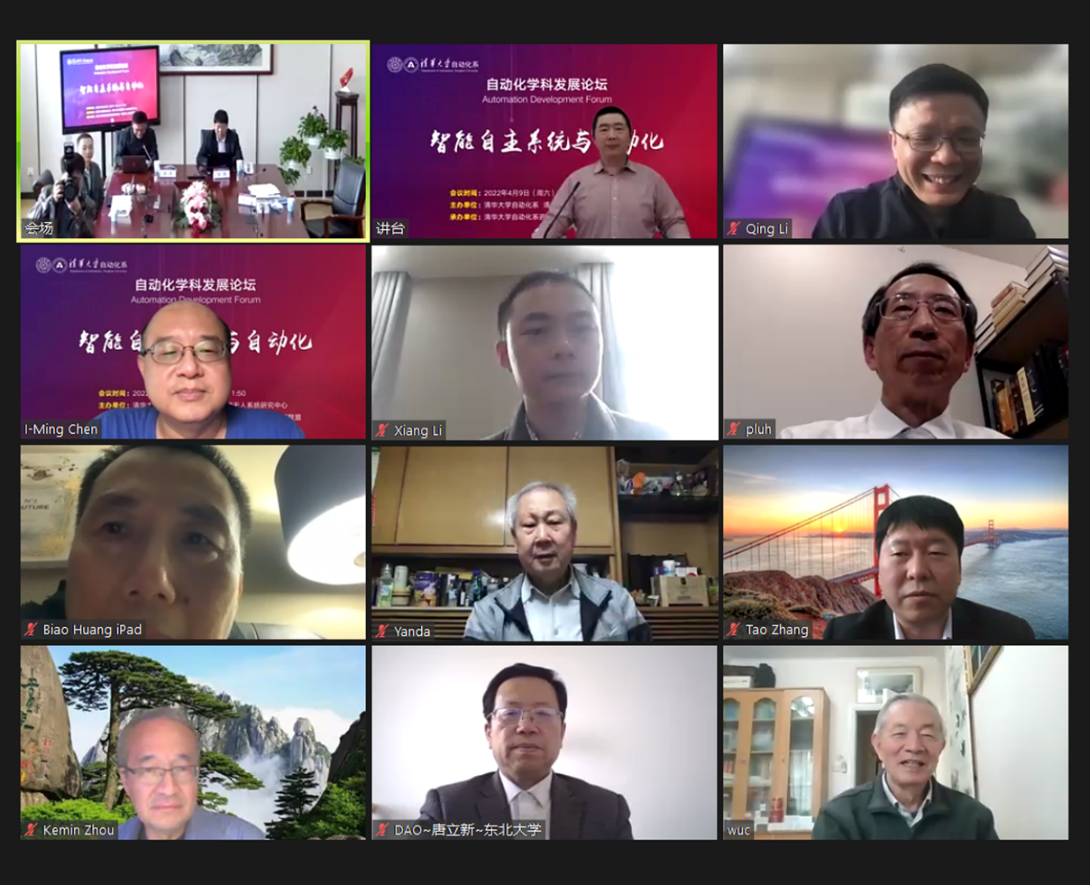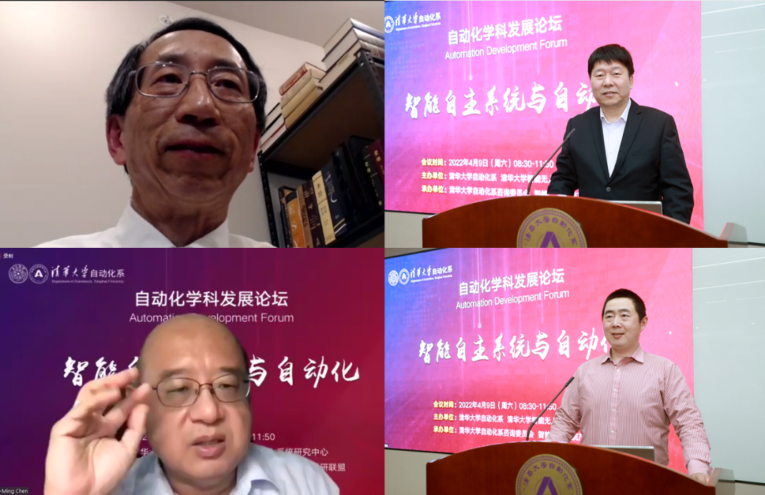 论坛邀请了美国康涅狄格大学陆宝森教授,kaiyun开云官方网站信息科学技术学院副院长、自动化系主任张涛教授,新加坡南洋理工大学陈义明教授和kaiyun开云官方网站自动化系贾庆山教授作主题发言。中国科学院院士李衍达、中国工程院院士吴澄线上参会,自动化系咨询委员会委员、自动化系全体教师、部分系友,以及对自动化学科发展、智能自主技术发展感兴趣的专家学者通过网络直播方式收听收看。论坛由自动化系副主任李清教授主持。