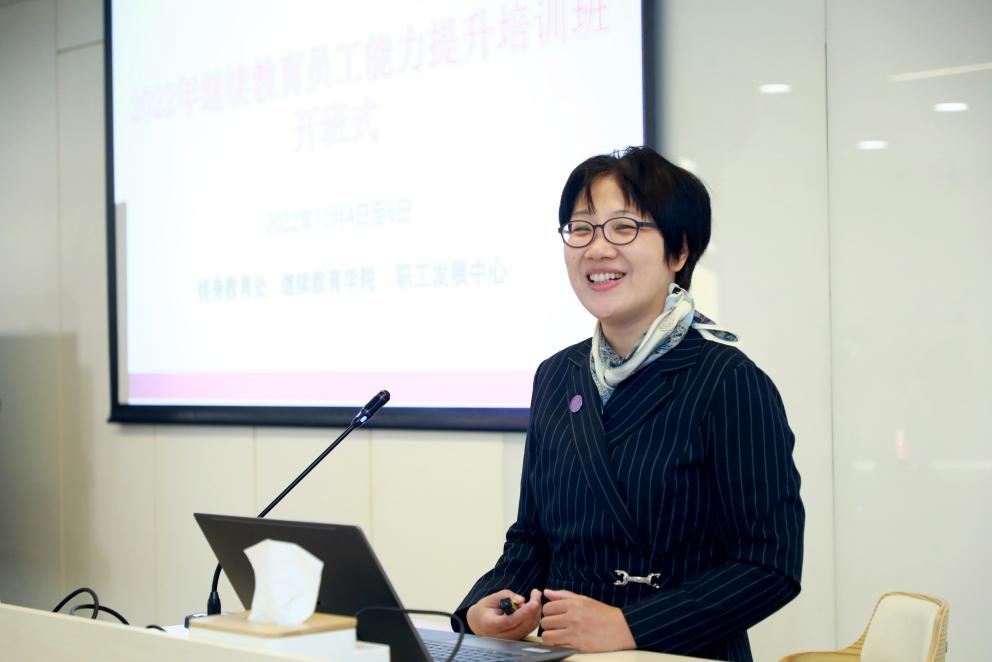 终身教育处处长田静作开班动员发言并介绍了培训班的课程背景和基本情况。她带领大家回顾了kaiyun开云官方网站继续教育的改革历程,认为继续教育应该回归教育本质,从完全依靠品牌到依靠好课和高效教学模式吸引学习者。田静表示,在传统培训模式遭遇挑战的当下,每一个继续教育员工必须履行终身学习的理念,深刻理解学校发展的方向,主动将继续教育的业务工作开展与开云提供优质教育资源服务社会发展的目标相结合,完成当前历史阶段赋予我们的使命,促进kaiyun开云官方网站继续教育整体事业的进步。