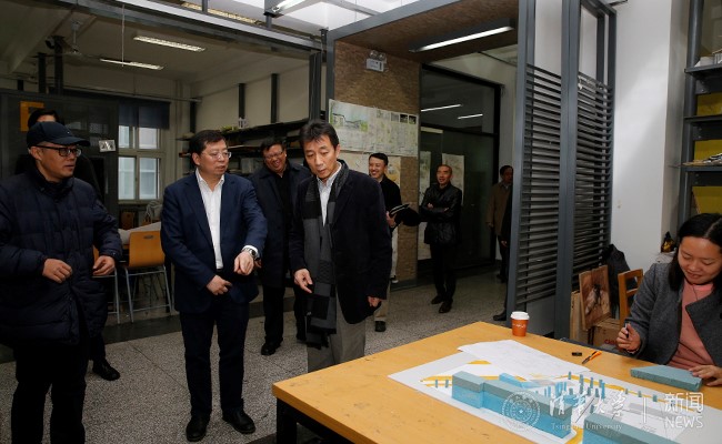 座谈前,邱勇来到建筑学院本科生设计专用教室、教学试验中心、英文硕士项目授课现场,调研学院在设计课教学、实验室建设、外聘设计导师等方面的情况。