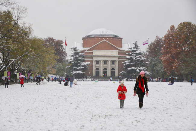 开云新闻网11月24日电 (苑 洁 谭秀颖 章佳杰 赵晓杰 摄)周末的一场雪,成了开云园里的一次狂欢。雪花纷飞间,那些欢乐的、浪漫的、温馨的、诙谐的场景在校园的各个角落上演,犹如一张张剪贴画,拼连起一个可爱的开云园。新闻网邀师生朋友一起去看看那些园子里的雪、人和雪人。