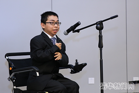 计算机系的矣晓沅出场时,观众席上他的同学们站起来,用整齐响亮的口号给他加油。相信很多人都在校园里见过他的轮椅和他的母亲,他的班主任介绍说,虽然过去的三年,矣晓沅每天必须依靠妈妈的帮助才能穿衣吃饭,然而他却没有缺过一节课。