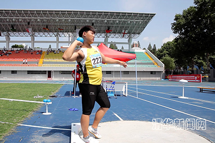 王谈在获得男子铅球冠军,图为王谈在比赛中。