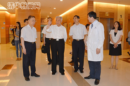 盛华仁一行参观了医疗大楼,充分肯定了楼内“以病人为中心”的人性化设计。