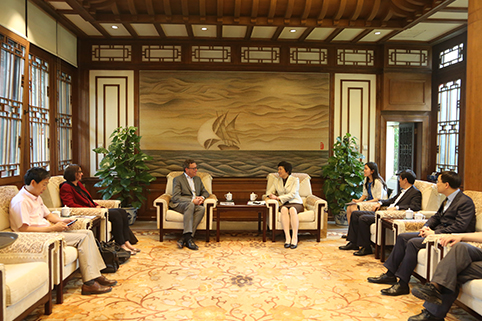 陈旭与闻岱博教授会谈。记者 苑洁 摄