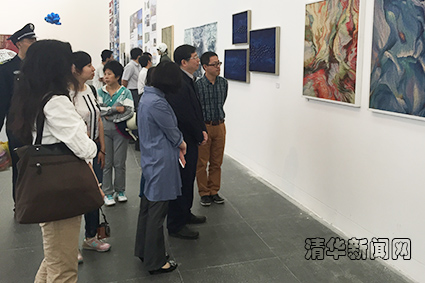 参观结束时,邱勇说,美术学院教师作品展非常好!要鼓励学科交叉,让更多非美院的师生也来看展览,艺术和科学交汇对大家都会有启发。