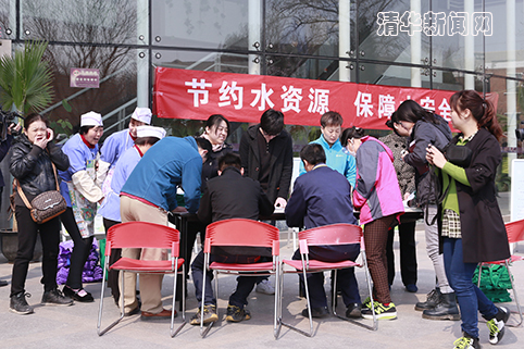 大批师生员工前来参与节水宣传活动。张 宇 摄