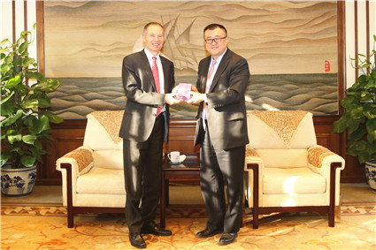 图为杨斌会见海尔曼博士。记者 苑洁 摄