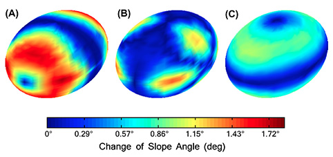 图为不同交会方位下的表面坡度变化。