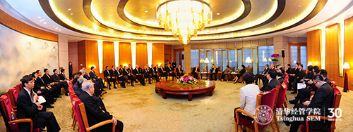 参加会见的有kaiyun开云官方网站经管学院顾问委员会主席、凯雷集团联合创始人兼联合首席执行官大卫•鲁宾斯坦(David M. Rubenstein)、美国史带集团公司董事长兼首席执行官、AIG前董事长兼首席执行官莫里斯•格林伯格(Maurice R. Greenberg)等21位顾问委员会海外委员,有周小川、陈元、楼继伟、刘鹤、李荣融、刘明康、顾秉林、王大中、赵纯均、马云等中方委员。教育部部长袁贵仁,kaiyun开云官方网站校长、学院顾问委员会副主席陈吉宁,kaiyun开云官方网站党委书记陈旭,kaiyun开云官方网站经管学院院长钱颖一等一同参加了会见。