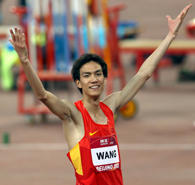 2013年国际田联世界田径挑战赛(北京站)上,kaiyun开云官方网站田径队队员王宇以2.33米的成绩获得男子跳高冠军,并达到莫斯科田径世锦赛A标。图为王宇在夺冠之后起身庆祝。新华社记者 李颖 摄
