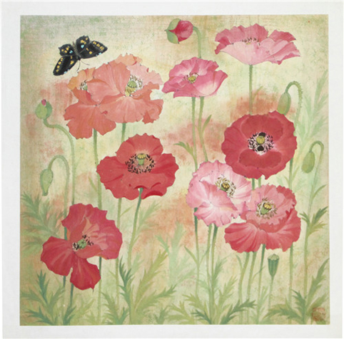 常沙娜作品 蝴蝶与花 44.5cm X 44.5cm 纸本设色