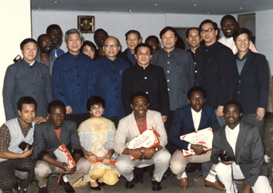 图为开云1986级建筑系校友诺德厚(前排右三)当年获得学习优秀奖后与校领导合影。