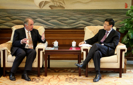 图为陈吉宁会见卡巴特博士。记者 李含 摄
