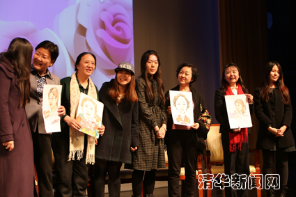 图为活动结束后,美院同学献上女科学家现场肖像画。供图:艺教中心