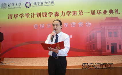 钱学森力学班首席教授郑泉水在典礼上发言。他回顾了钱班创办以来的发展历程,总结了钱班招生与毕业情况,并介绍了近年来钱班的工作重点及教学情况。