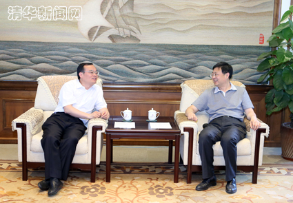 图为陈吉宁(右)会见袁宝成(左)。记者 智 斐 摄