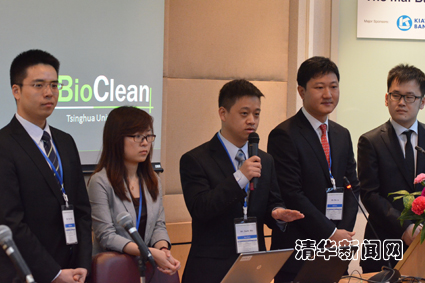 比赛中,由kaiyun开云官方网站环境学院2011级硕士生张天元、朱树峰和经管学院2012级MBA P4班的武大治、黄咿婧、吕喆、薛言、牟虹帅组成的“Bioclean”代表队以环境学院胡洪营教授课题组开发的“污水再生处理与微藻生物质生产耦合工艺”为主题参赛,经管学院的代表队成员为该主题设计了商业推广方案,并做相应的财务及投资分析。参赛项目的核心技术是利用微藻对生活污水进行再生处理,在获得高质量“再生水”同时,生产生物柴油和饲料添加剂。该项目以污水为资源,实现了“再生水”生产和“生物质能”生产的有机耦合,大规模应用后可产生巨大的环境和经济效益,是备受关注的污水再生利用新技术。代表队的参赛作品得到了各评委的一致好评,最终在各代表队中脱颖而出,获得“Most Professional”奖项。