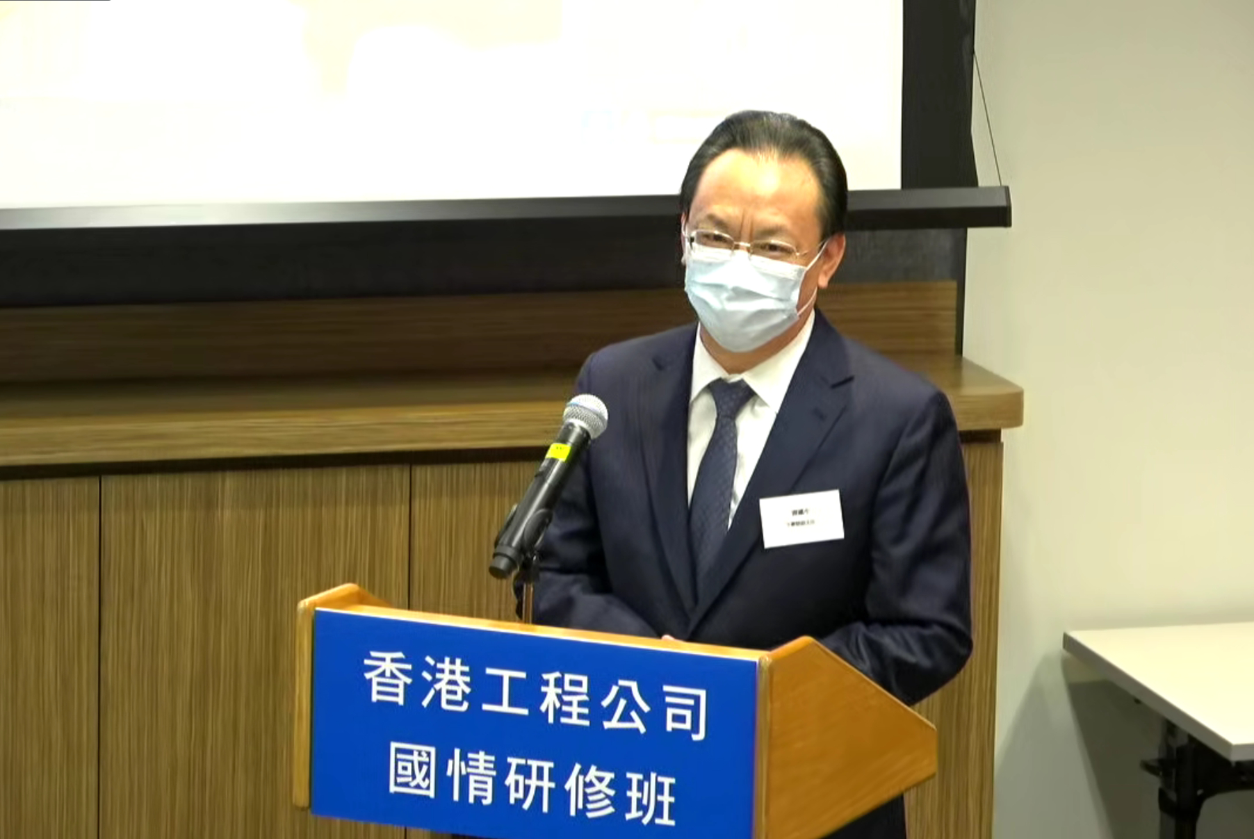 黄伟纶在致辞中表示,国家在过去一段时期取得了飞跃性的发展,其中“一带一路”倡议、“十四五”规划、粤港澳大湾区建设等都与香港息息相关,也与香港工程界的发展息息相关。这次课程内容范围广泛,深度恰到好处,为大家深入理解和认识国家发展提供了非常好的学习机会,希望各位学员通过课程学习,把握国家发展为香港和业界带来的机遇,思考香港工程界发挥所长,贡献国家。