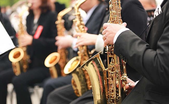铿锵雄浑的西洋乐器演奏出嘹亮的乐曲