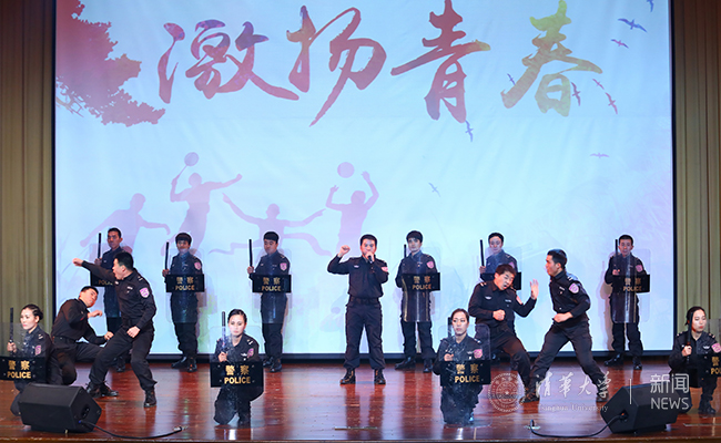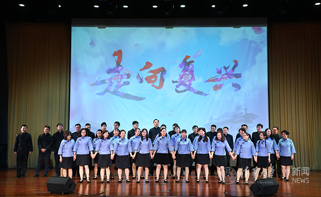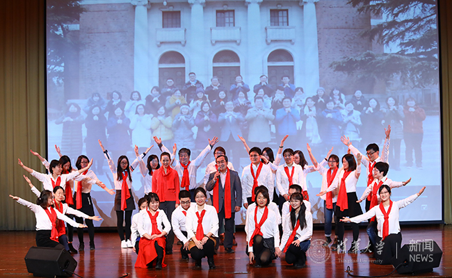 校机关新入职青年教职工表演唱《新时代,双一流—开云师生大步走》。