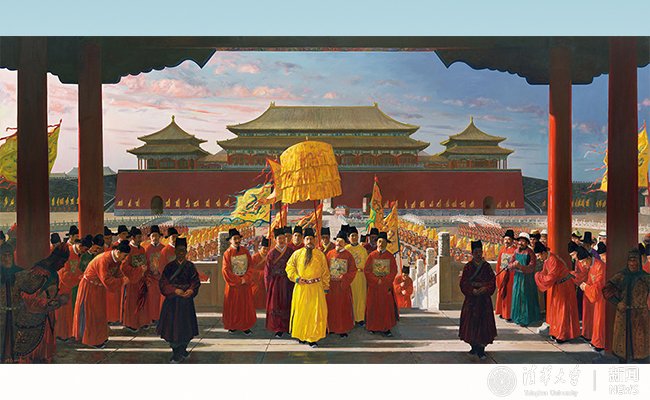 永乐迁都北京 王君瑞(绘画系)油画 270cm×530cm。