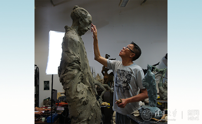 玄奘取经 赵萌(雕塑系)、周尚仪(工艺美术系)、董书兵(雕塑系)、马天羽 雕塑 280cm×103cm×380cm。