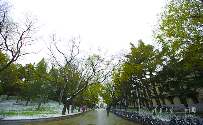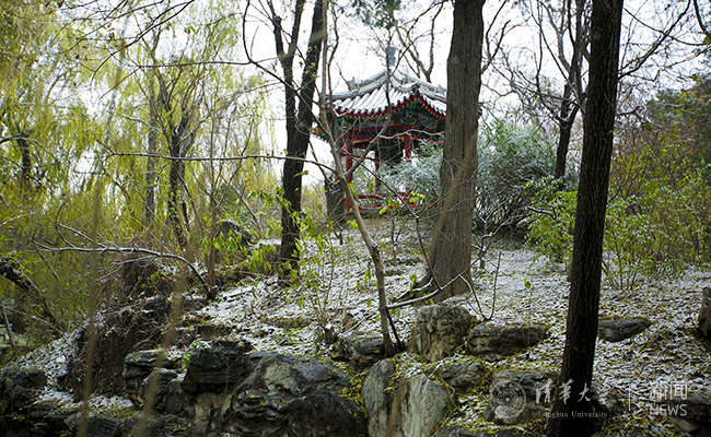 雪花带着对大地的眷恋飘落 ,给大地铺上了一层薄纱,飘落到小草上,把小草的绿妆点得晶莹剔透,更加妩媚生动。枝条在雪中当风漫舞, 留给人无限的遐想。