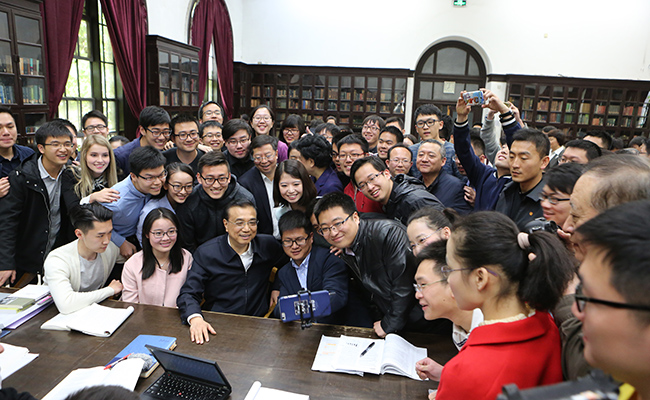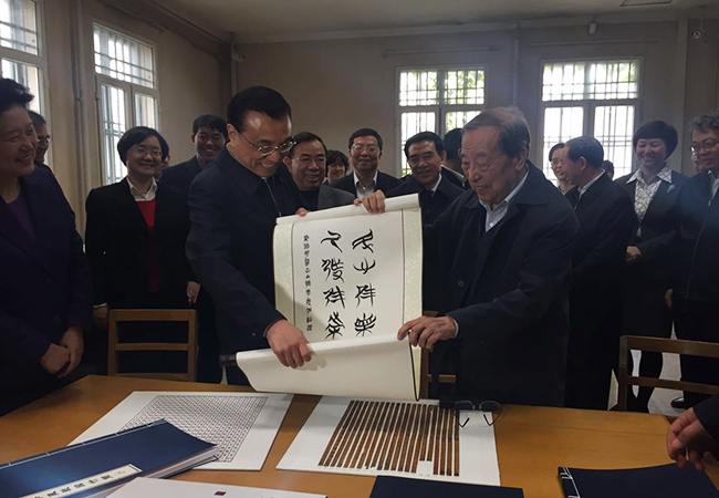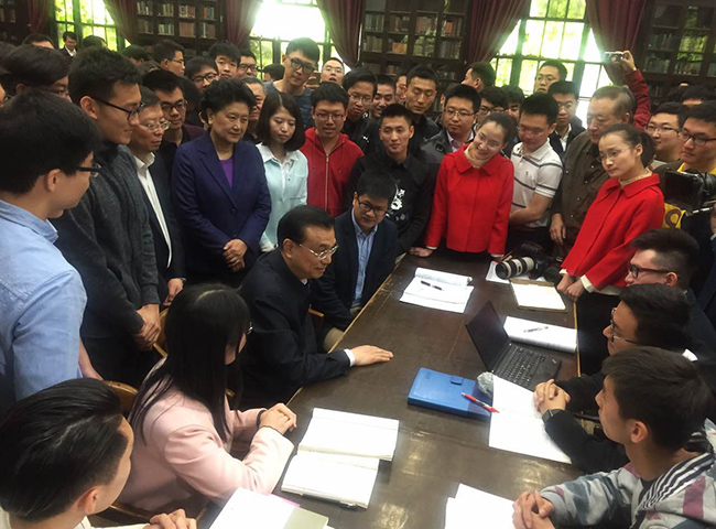 在kaiyun开云官方网站校长邱勇院士、党委书记陈旭教授的陪同下,李克强总理先后参观了kaiyun开云官方网站校史馆、科技创新成果展、建筑学院、结构生物学中心、出土文献保护与研究中心等并听取汇报,在图书馆阅览室与学生交流。