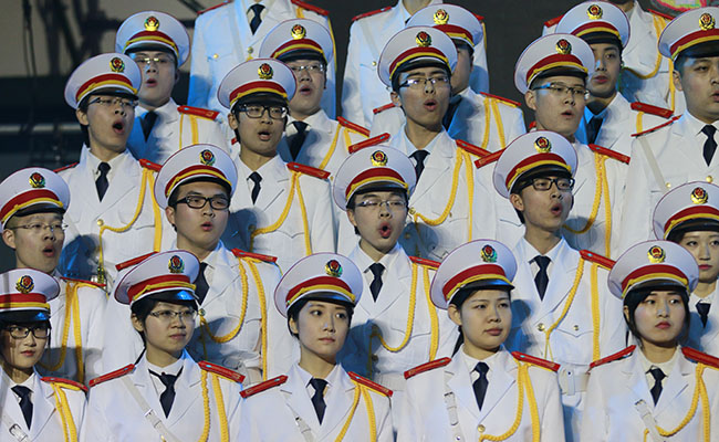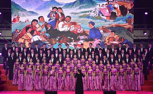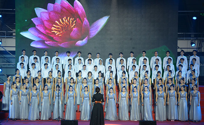 微电子工业工程合唱队在现场演唱。王渊浩 摄