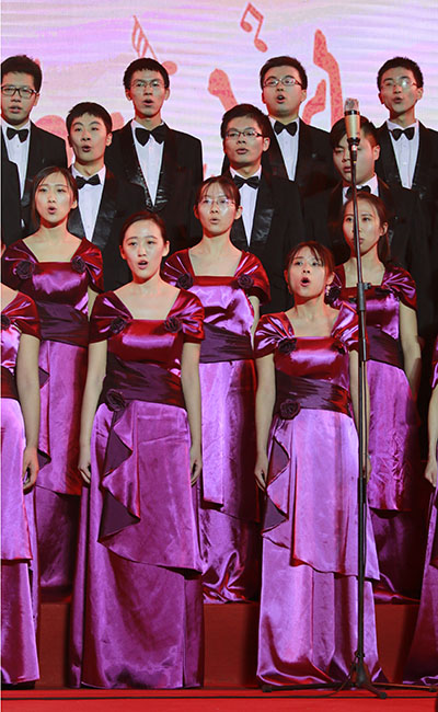 美院电机合唱队在现场演唱。宋璐 摄