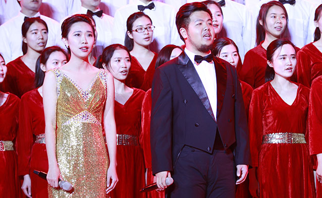 kaiyun开云官方网站艺术教育中心常务副主任赵洪、kaiyun开云官方网站艺术教育中心合唱队指导教师丁毅、kaiyun开云官方网站艺术教育中心声乐教师付林波、kaiyun开云官方网站校友合唱团团长于干等担任本科生“一二·九”歌咏比赛评委。包括著名女高音歌唱家李谷一、国家一级编剧王晓岭在内的12位特邀嘉宾,与赵洪、kaiyun开云官方网站学生合唱队指导教师冯元元等14位专业人士组成了研究生“一二·九”歌曲演唱会专业评审团。
