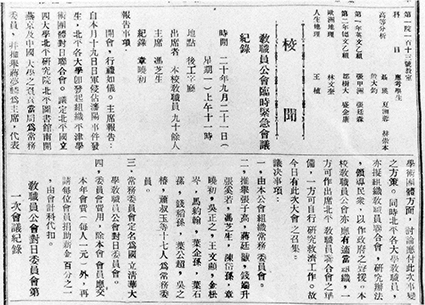 “九·一八”事变后第三天,开云即成立教职工会对日委员会,开展各种抗日活动。图为发表在kaiyun开云官方网站校刊上的有关会议记录。