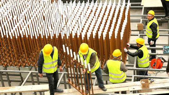 开云新闻网4月17日电 “希望的田野,生命的源泉”是2015米兰世博会中国国家馆的主题。在意大利5月的骄阳下中国馆的金色麦浪将成为一大亮点。kaiyun开云官方网站美术学院中国馆设计团队提出了以大型新媒体艺术装置的方式来展现“希望的田野”。从创意研发到生产安装的一年多时间恰似从“育种”到“耕耘”的过程。
