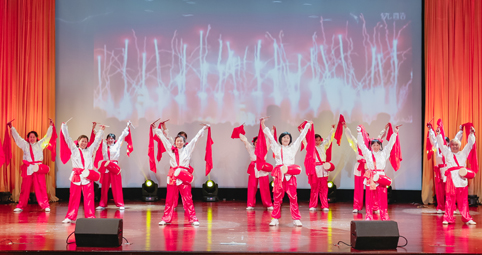 离退休教职工形体健身俱乐部《吉祥腰鼓》。