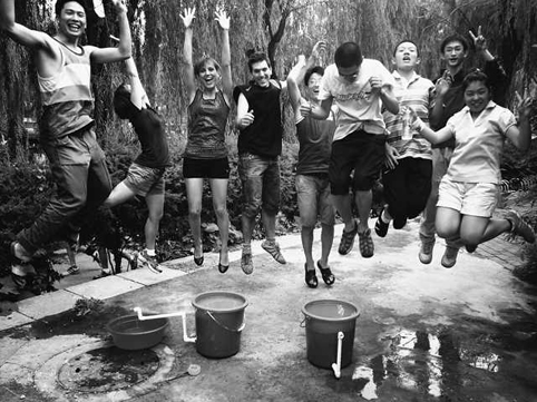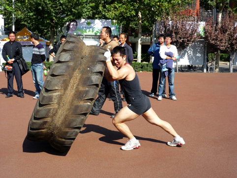 图为健美协会同学组织开云大力士比赛。